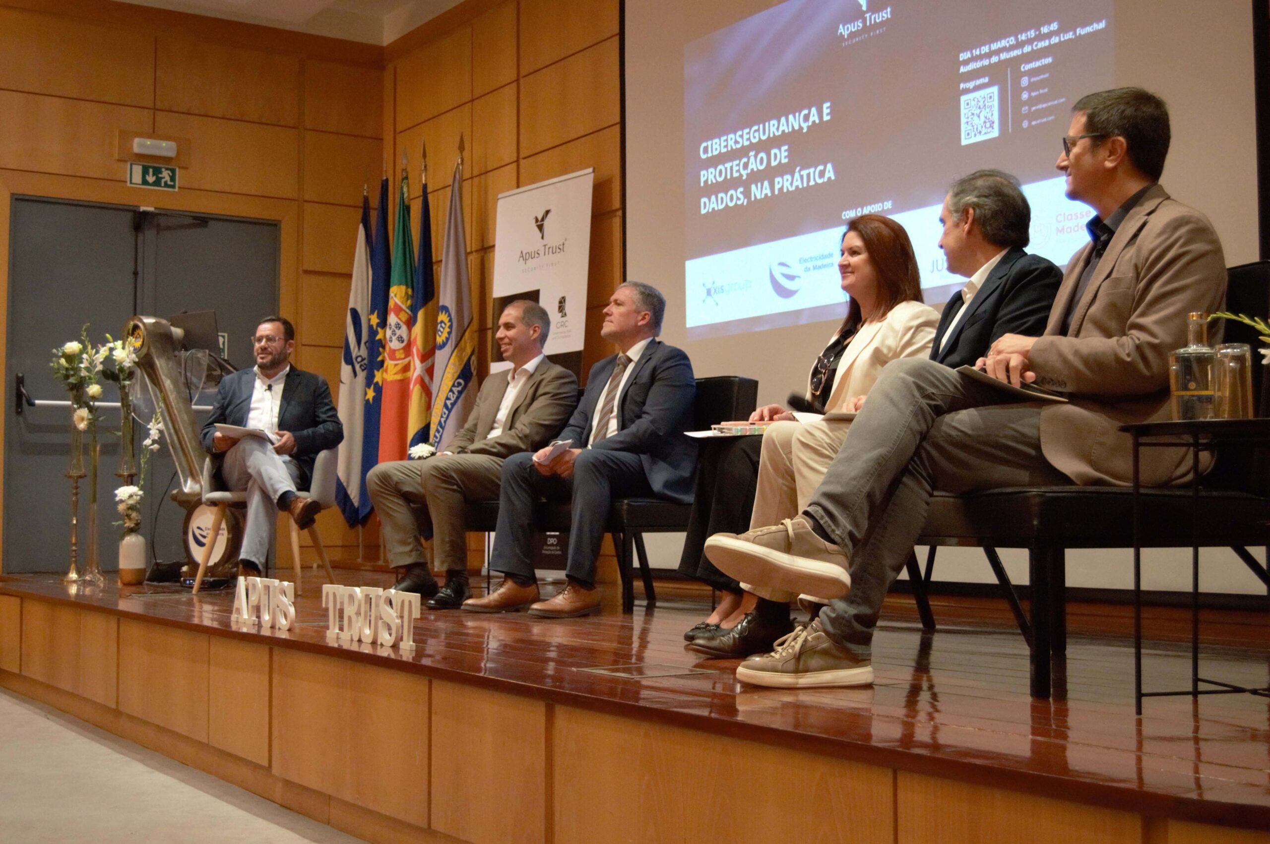 Com o fantástico Auditório do Museu Casa da Luz da EEM lotado, 150 participantes beneficiaram da troca de experiências, conhecimentos e pontos de vista nas áreas de Cibersegurança e Proteção de Dados. Agradecemos a mensagem de abertura pelo Eng. Davide Sousa (Diretor da Direção de Sistemas de Informação da EEM), ótima moderação do debate pelo Jornalista Miguel Garda (Rádio JM/FM) e brilhantes intervenções dos oradores: Eng. Nuno Perry (Diretor de Serviços de Cibersegurança do Governo Regional da Madeira), Drª Carla Freitas (CISO da EEM), Dr. Filipe Marques (Administrador do Grupo Cardoso), Professor Eduardo Marques (Docente e Investigador da UMa na área da Cibersegurança) e Eng. Vitorino Gouveia (Diretor Geral da Apus Trust e Especialista em Cibersegurança e Proteção de Dados)